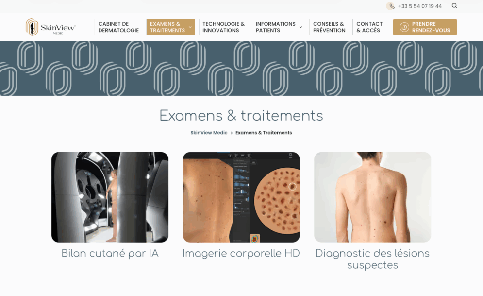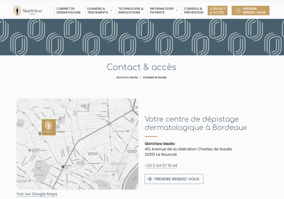 La modernité du site reflète parfaitement l’innovation technologique du centre et renforce sa position d’acteur de référence dans le dépistage dermatologique assisté par intelligence artificielle sur la métropole bordelaise.