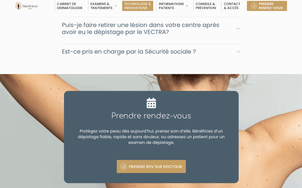 La Boîte à Re a été missionnée pour concevoir et développer le site internet vitrine de SkinView Medic, mettant en avant l’innovation technologique et l’expertise médicale du centre.